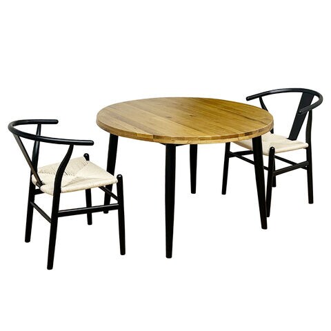 後藤家具物産・大川リビング木工社 幅110cmオーク円卓ダイニング3点セット(チェアーブラック&ホワイト) 【他商品との同時購入不可】メーカー直送品(沖縄県・離島はお届け対象外となります) VT-01-EN-3-BKWH 【返品種別B】
