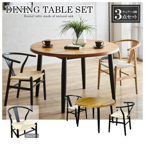 ◆一枚板風オーク無垢材を使用した高級感ある幅110cm円卓ダイニングテーブル3点セット。