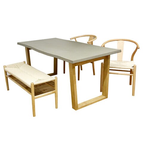 後藤家具物産・大川リビング木工社 幅160cmコンクリート調ダイニング4点セット チェアー2脚/幅100cmベンチ1脚(チェアーナチュラル&ホワイト/ベンチナチュラル) 【他商品との同時購入不可】メーカー直送品(沖縄県・離島はお届け対象外となります) VT-0【返品種別B】