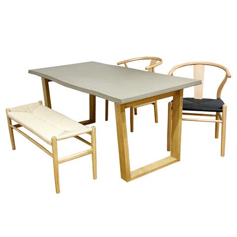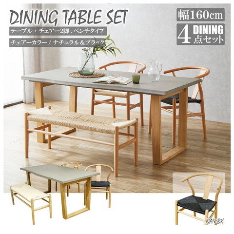 後藤家具物産・大川リビング木工社 幅160cmコンクリート調ダイニング4点セット チェアー2脚/幅100cmベンチ1脚(チェアーナチュラル&ブラック/ベンチナチュラル) 【他商品との同時購入不可】メーカー直送品(沖縄県・離島はお届け対象外となります) VT-0【返品種別B】
