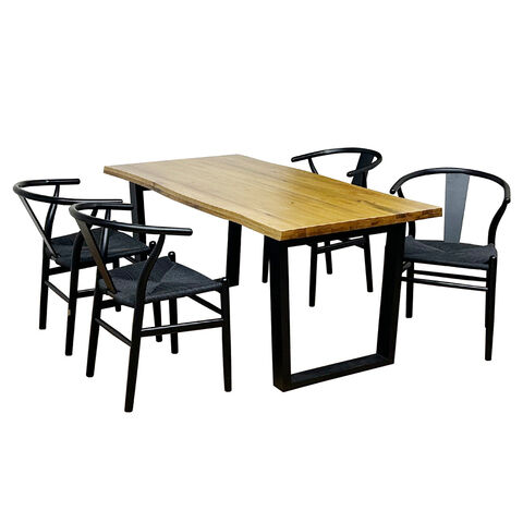 ◆一枚板風オーク無垢材を使用した高級感ある幅160cmダイニングテーブル5点セット。