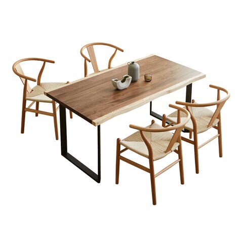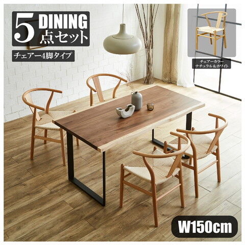 ◆一枚板風ウォールナット突板とアッシュを使用した高級感ある幅150cmダイニングテーブル5点セット。