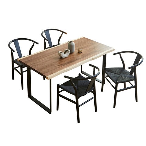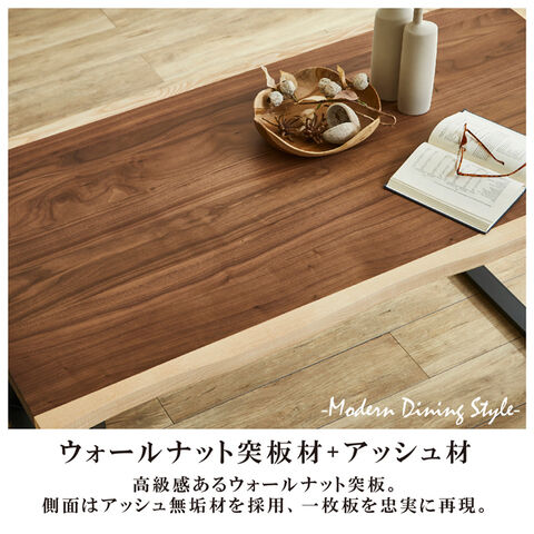 ◆一枚板風ウォールナット突板とアッシュを使用した高級感ある幅150cmダイニングテーブル5点セット。