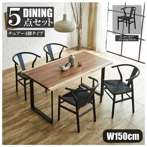 ◆一枚板風ウォールナット突板とアッシュを使用した高級感ある幅150cmダイニングテーブル5点セット。