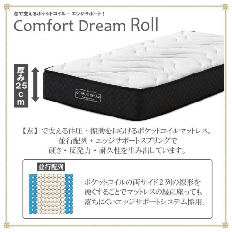 プロファイル加工ウレタンフォームを採用した快適な寝心地のポケットコイルマットレス