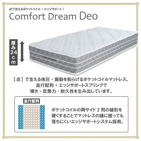 ◆ポケットコイルは並行配列でマットの両サイド2列は線形を硬くしマットレスの淵に座っても落ちにくいエッジサポートしシステムを採用しております