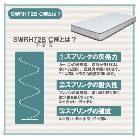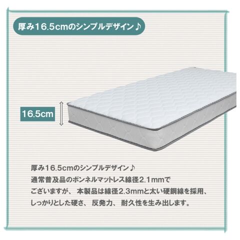 ◆通常普及品のボンネルマットレス線径2.1mmでございますが、本製品は線径2.3mmと太い硬鋼線を採用、しっかりとした硬さ、反発力、耐久性を生み出します