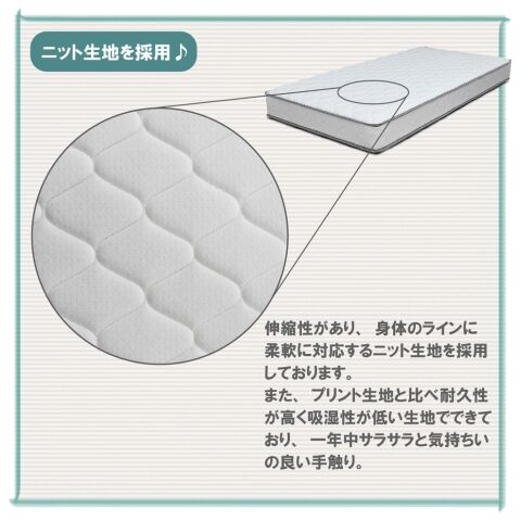 しっかり硬めな確かな寝心地、ニット生地仕様のダブルサイズのボンネルマットレス