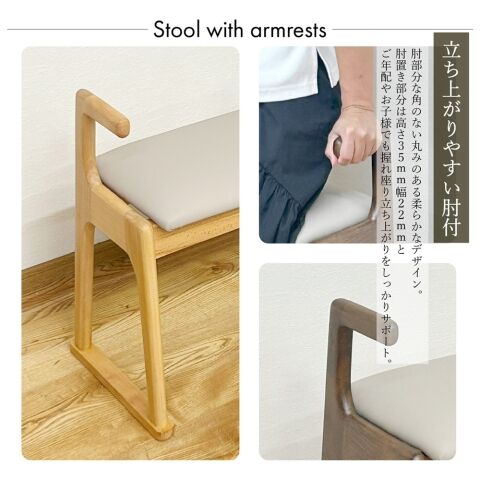 後藤家具物産・大川リビング木工社 肘掛グリップ付きスツール(ナチュラル) 【他商品との同時購入不可】メーカー直送品(沖縄県・離島はお届け対象外となります) ST-TYOIKAKE-NA 【返品種別B】