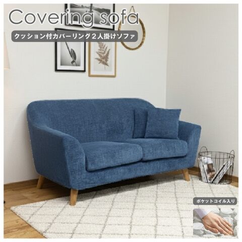 後藤家具物産・大川リビング木工社 カバーリング2人掛けソファ(ブルー) 【他商品との同時購入不可】メーカー直送品(沖縄県・離島はお届け対象外となります) SO-LIK-BL 【返品種別B】