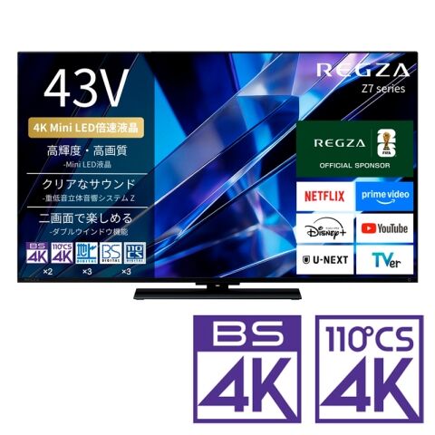 REGZA(レグザ) 43V型 Mini LED液晶テレビ[BS・CS 4Kチューナー内蔵] REGZA Z7 series Z770S 43Z770S 【返品種別A】