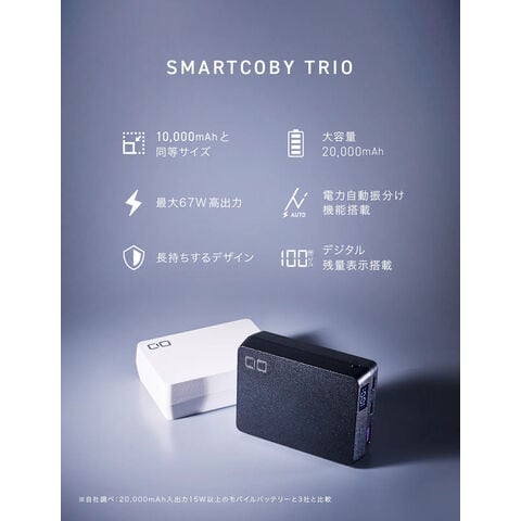 CIO モバイルバッテリー USB-C×2/USB-A×1 最大67W入出力 20000mAh(ホワイト) CIOMB67W2C1A20000-WH 【返品種別A】