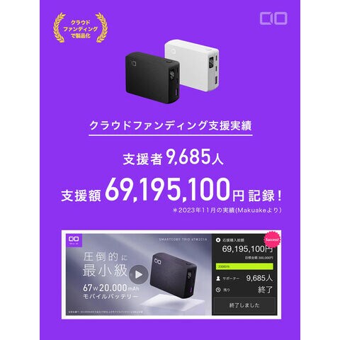 合計3ポート 最大67W入出力 20000mAh モバイルバッテリー