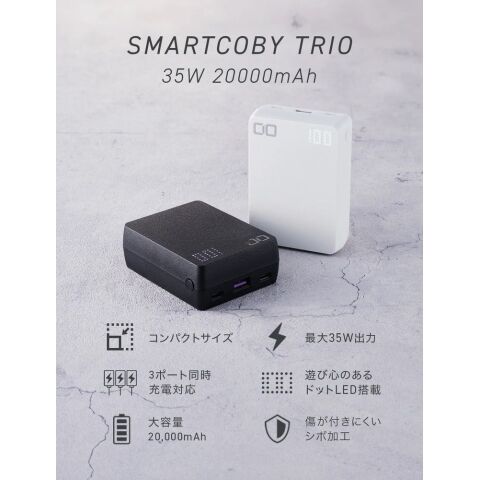 バッテリーを充電するのが面倒で、使いたい時にバッテリーが空になっているとき、『SMARTCOBY TRIO』はパススルー機能搭載で、バッテリーに充電しながらスマホなどへの充電にも対応しております。