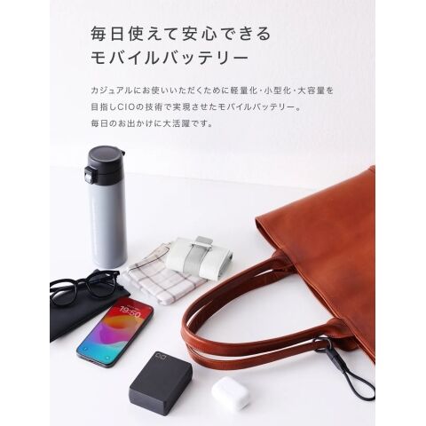 従来の20000mAhモバイルバッテリーと比較し、約3分の2の体積を実現(CIO製品との比較)。
