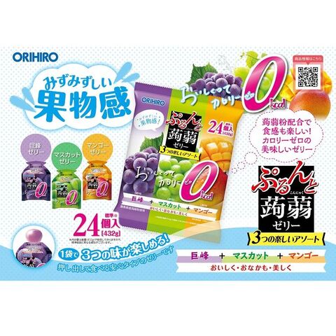 オリヒロ ぷるんと蒟蒻ゼリーパウチ 大袋 カロリーゼロ 巨峰+マスカット+マンゴー(432g) オオブクロ キヨホウ+マスカト+オレン 【返品種別B】