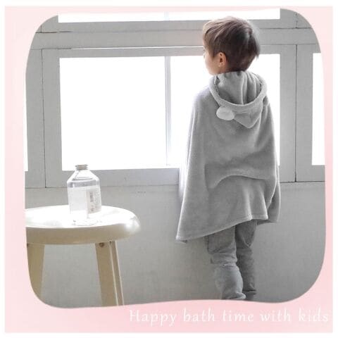◆着丈約60cmの絶妙なサイズ感で、大人が着ればポンチョサイズに。お子さまが着れば、前合わせのボタンと首回りのゴムで身体をふんわり覆ってくれる可愛いラップタオルに!