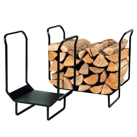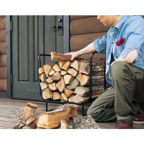 ◆伝統的デザインに薪屑こぼれ防止の底板が付いたウッドホルダー。