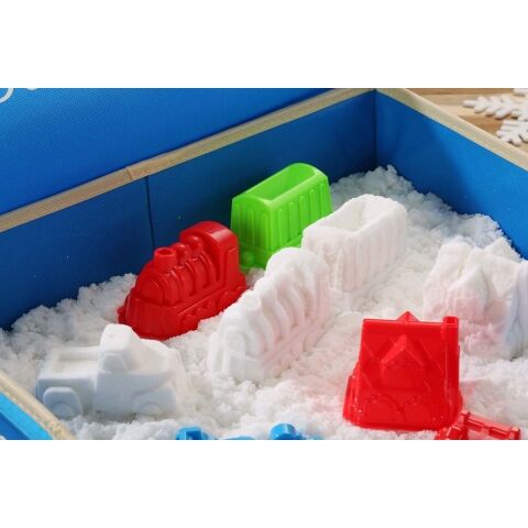 スノー1000g(500g×2) 蓋付き40×40cmスノープレイケース 押し型:お家・クルマ・機関車の10個 雪だるまセット