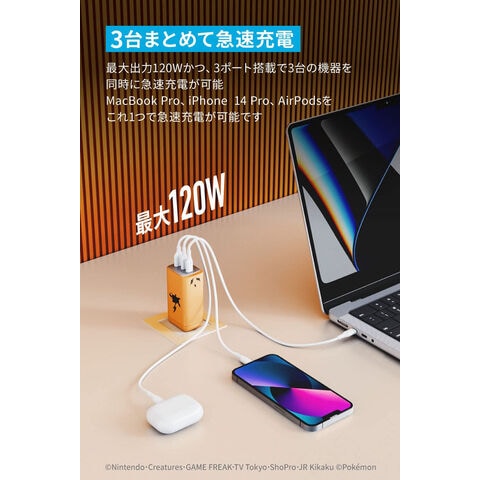 Anker USB急速充電器 120W USB A 1ポート/Type C 2ポート(ライチュウモデル) B2148N71 【返品種別A】