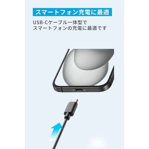 USB-Cケーブル一体型で、iPhone 15を含むスマートフォンの充電に最適。