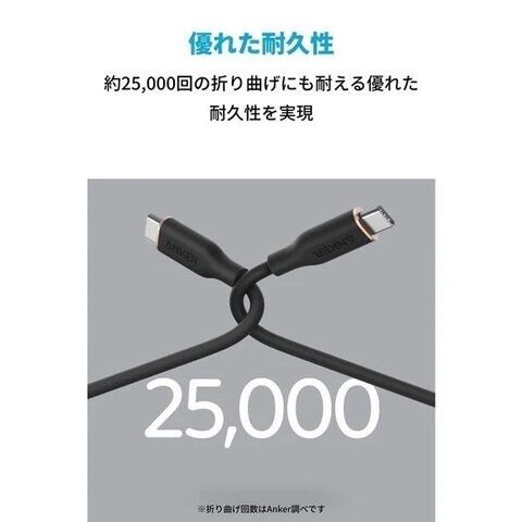 約25000回の折り曲げにも耐える優れた耐久性を実現しているため、ケーブル内部のワイヤーを断線から保護し、安心して充電することができます。