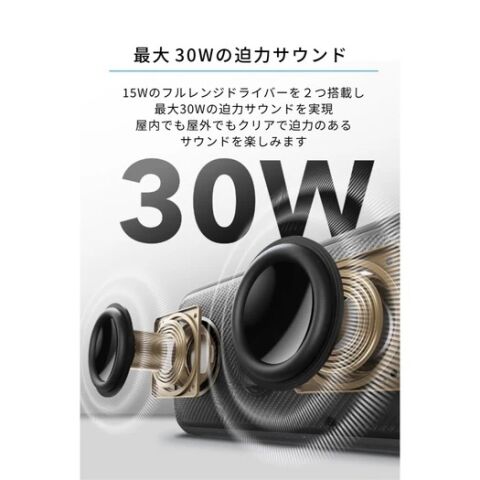 リアルタイムで低音を強化するSoundcoreの独自技術BassUpテクノロジーとデュアルパッシブラジエーターにより深みのある低音をお楽しみいただけます。