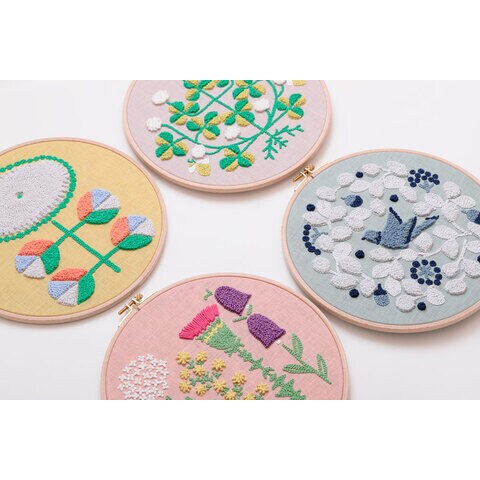 ◆リネン100%の布に太めのコットン糸で刺していくので、直径25cm刺繍枠に配置した大きなデザインもスムーズに仕上がります。