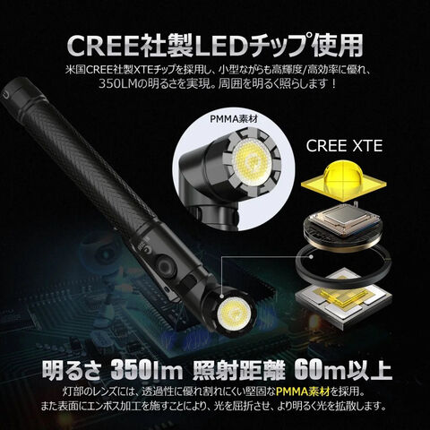 グッド・グッズ USB Type-C充電式 首振り対応LED懐中電灯 GOODGOODS HL-350F 【返品種別A】
