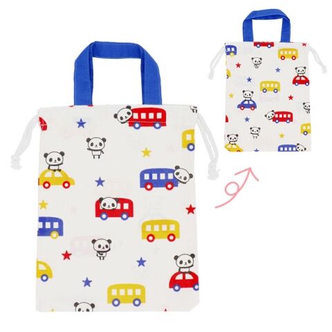 ◆パンダのプリントデザインが可愛い! 持ち手付きの巾着。