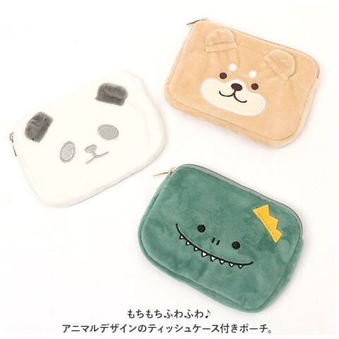 もちもちふわふわ! アニマルデザインのティッシュケース付きポーチ。