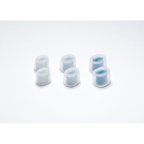 イヤーチップの傘部分は耳に直接触れる部分であり、圧力を高めることで密閉感や安定感を高くする反面、長時間の装着時の痒みや痛みの原因でもありました。MDX30では、前述の通りエリプス形状にする事に加え傘部分の材質を耳道内部と近い柔らかさに設定することで耳への負担を低減しました。また、耳道内部に触れる傘部分の設計を平坦にすることで圧力を減らしながら耳道内で広く接するように工夫。これにより装着感と密閉感の担保を同時に実現しました。