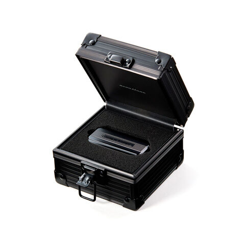 ワイヤレスモジュールには安定した通信のために樹脂筐体を採用。表面には一眼レフカメラ等でも使用されるレザートーン塗装が施され、音響チャンバーと組み合わせても違和感のない重厚感のあるデザインとなりました。