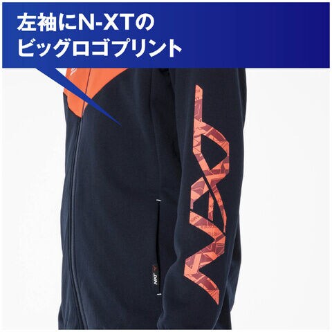 ◆左袖のN-XTビッグロゴプリントがポイントのウォームアップジャケットです。