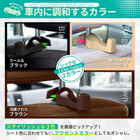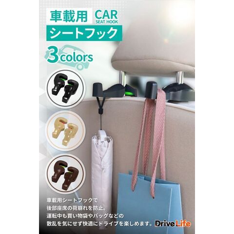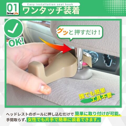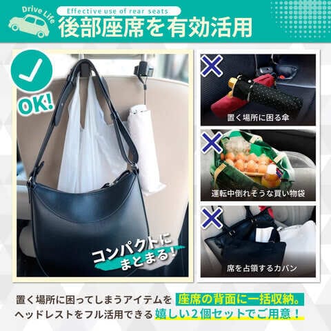 ◆ヘッドレストにフックを装着するだけで後部座席を有効活用!
