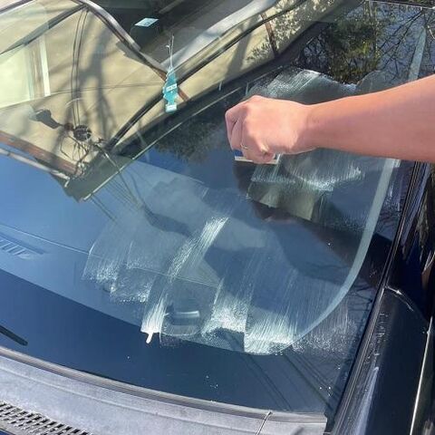 1.ガラスに水をかけ、ほこりや汚れをよく水で洗い流す。