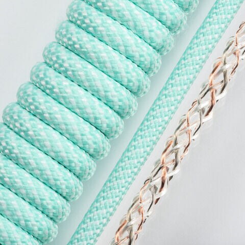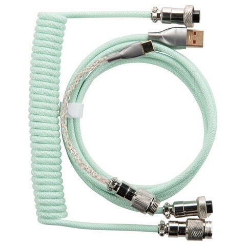 ◆コイル型ケーブルをアビエイターコネクターでUSBケーブルと接結したキーボード用ケーブル。