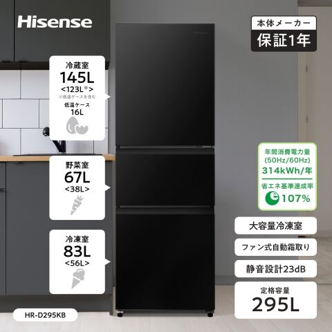 【設置無料 Aエリア】ハイセンス 295L 3ドア冷蔵庫(ブラック)【右開き】 Hisense HR-D295KB 【返品種別A】