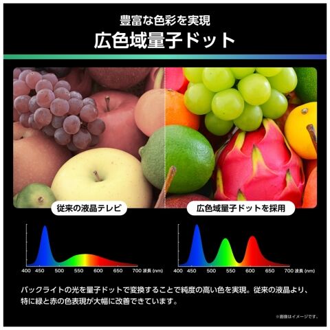 バックライトの光を量子ドットで変換することで純度の高い色を実現。