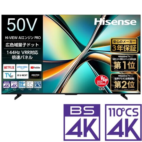 ハイセンス 50V型 量子ドット液晶テレビ[BS・CS 4Kチューナー内蔵] Hisense U6R 50U6R 【返品種別A】