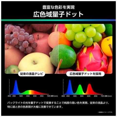バックライトの光を量子ドットで変換することで純度の高い色を実現。