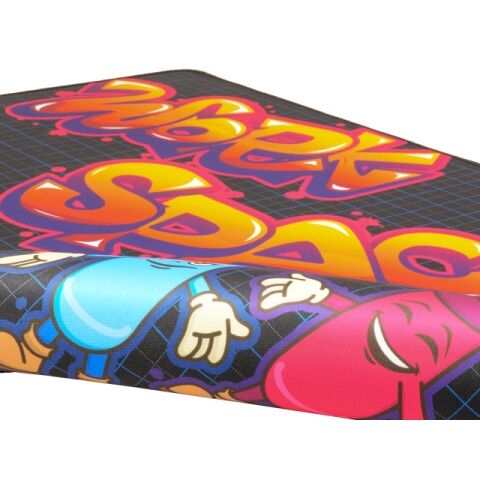 「WORK SPACE」は、グラフィティ調の文字とキュートなイラストが印象的で、ポップな作業空間を演出。 表面には軽量で取り扱いやすいポリエステル素材を使用し、耐久性と清掃のしやすさを兼ね備えています。 裏面にはラバー素材を採用し、滑り止め効果で安定した作業環境を確保。 W600 × H400mmの適度なサイズ感で、机の上や作業台で快適に使える設計です。