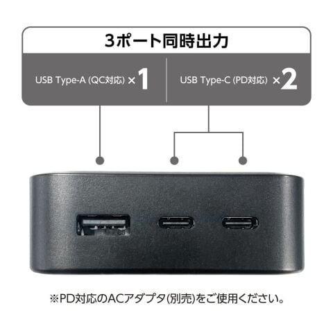 ◆3ポート同時充電可能(Type-C×2Type-A×1)
