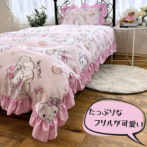 ◆ボリュームフリルがついた布団カバー3点セットにハローキティが仲間入り♪