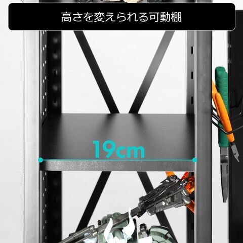 完成したプラモデルやフィギュア、お気に入りの工具など、モデラーの「好き」を思う存分飾ることが可能です。