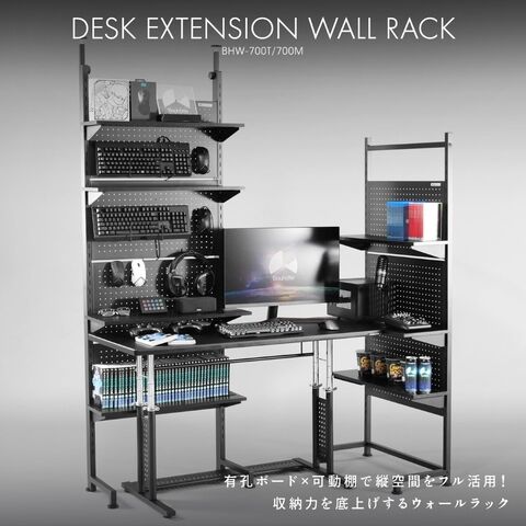 バウヒュッテ デスクの向こう側ウォールラック(ブラック) 据え置きタイプ Bauhutte 簡単設置 有孔ボード×可動棚 幅70cm ウォールマウント BHW-700M-BK 【返品種別A】