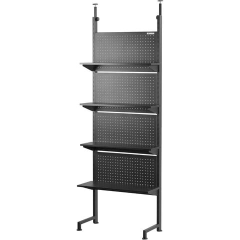 バウヒュッテ デスクの向こう側ウォールラック(ブラック) 突っ張りタイプ Bauhutte つっぱり棚 有孔ボード×可動棚 幅70cm 天井マウント BHW-700T-BK 【返品種別A】