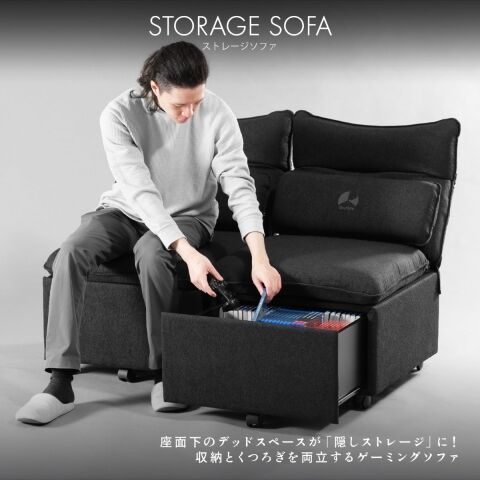 ゲーマーの慢性的な収納不足を解決する、大容量ストレージ付きソファ。