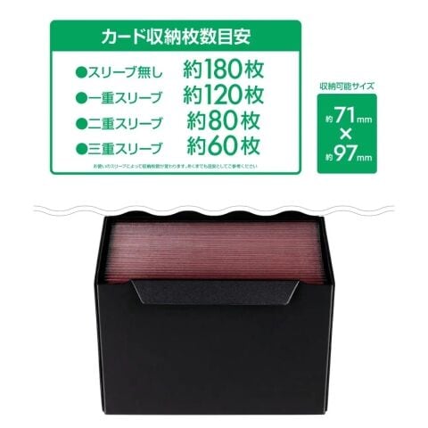 多重スリーブのカードも収納可能。 W73mm×D73mm×H98mm以下のスリーブ装着時
