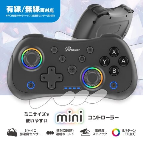アンサー Switch2/PC用 miniコントローラー ブラック ANS-SW200BK 【返品種別B】